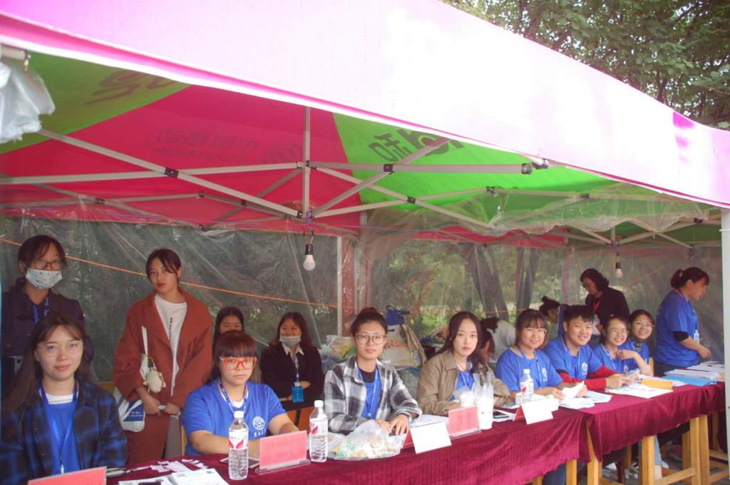 的老师和志愿者们早早地来到迎新现场,清晨7点,一切准备工作就绪。